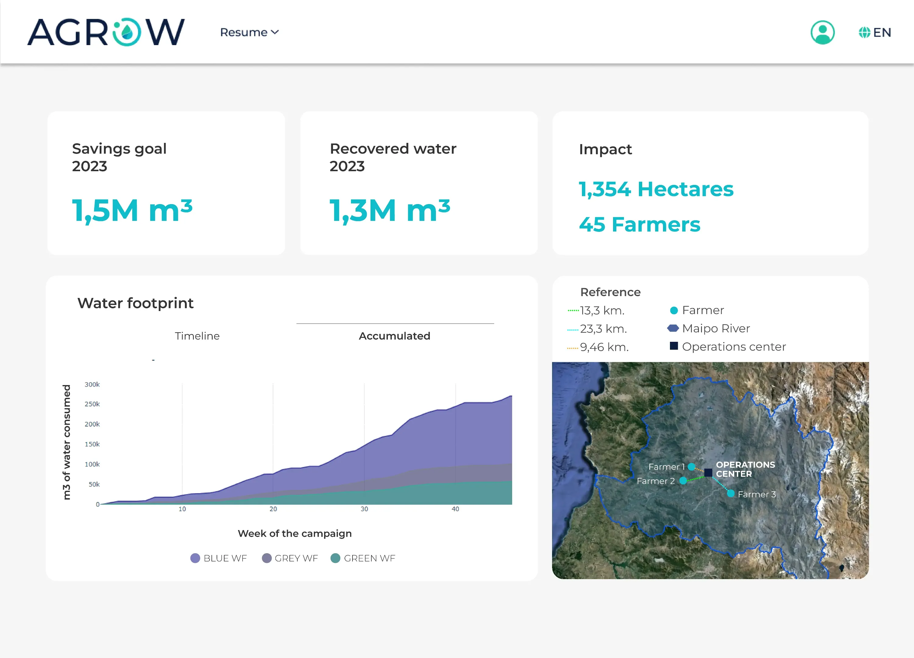 Specialized in water efficiency on agriculture, we turn every saved water drop on certified savings, helping corporations to restore water-stressed basins and meeting their water stewardship goals such as becoming Water Positive or Water Neutral through specific and verified activities.